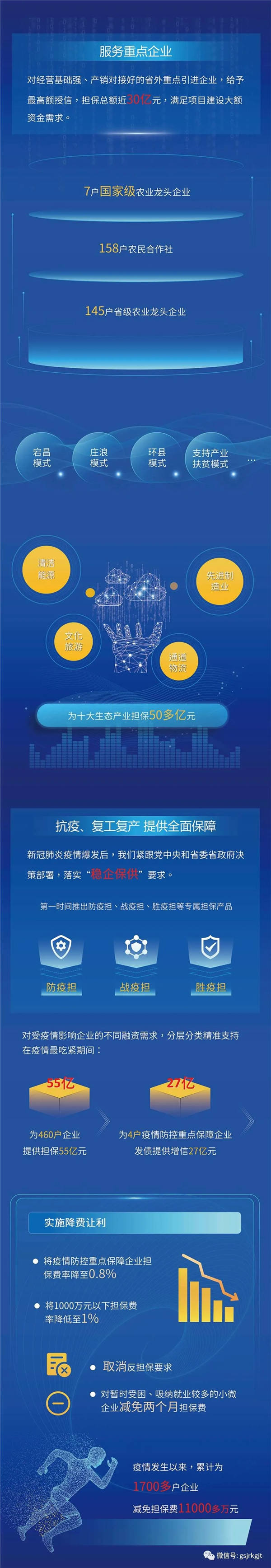 以政府性融资担保为使命,拓展做实业务板块,控参股企业60多家,涵盖证券、担保、基金、信托、投资、租赁、征信、小额信贷、要素市场和供应链金融等10个金融板块。