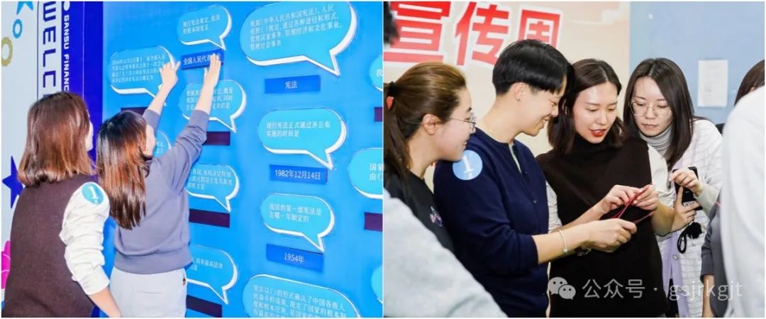 “活动期间,大家在宪法知识宣传展板处驻足学习,拍照留念,加深了对宪法知识的印象和理解。在游戏环节中,各队之间不仅要负重大型道具赛跑,还要将答案贴在对应的宪法知识题目下方;在知识抢答题环节,各队在宪法知识“盲盒”中抽取题目,进行抢答,不仅考验日常知识积累,更考验各队的临场反应速度;在“宪法视力表”前,无论是选手还是观众,都竞相识别“视力表”内容,直呼“太难了”,但越挫越勇的心劲,不断激发着参赛选手的斗志,大家纷纷沉浸在学习宪法的快乐中。