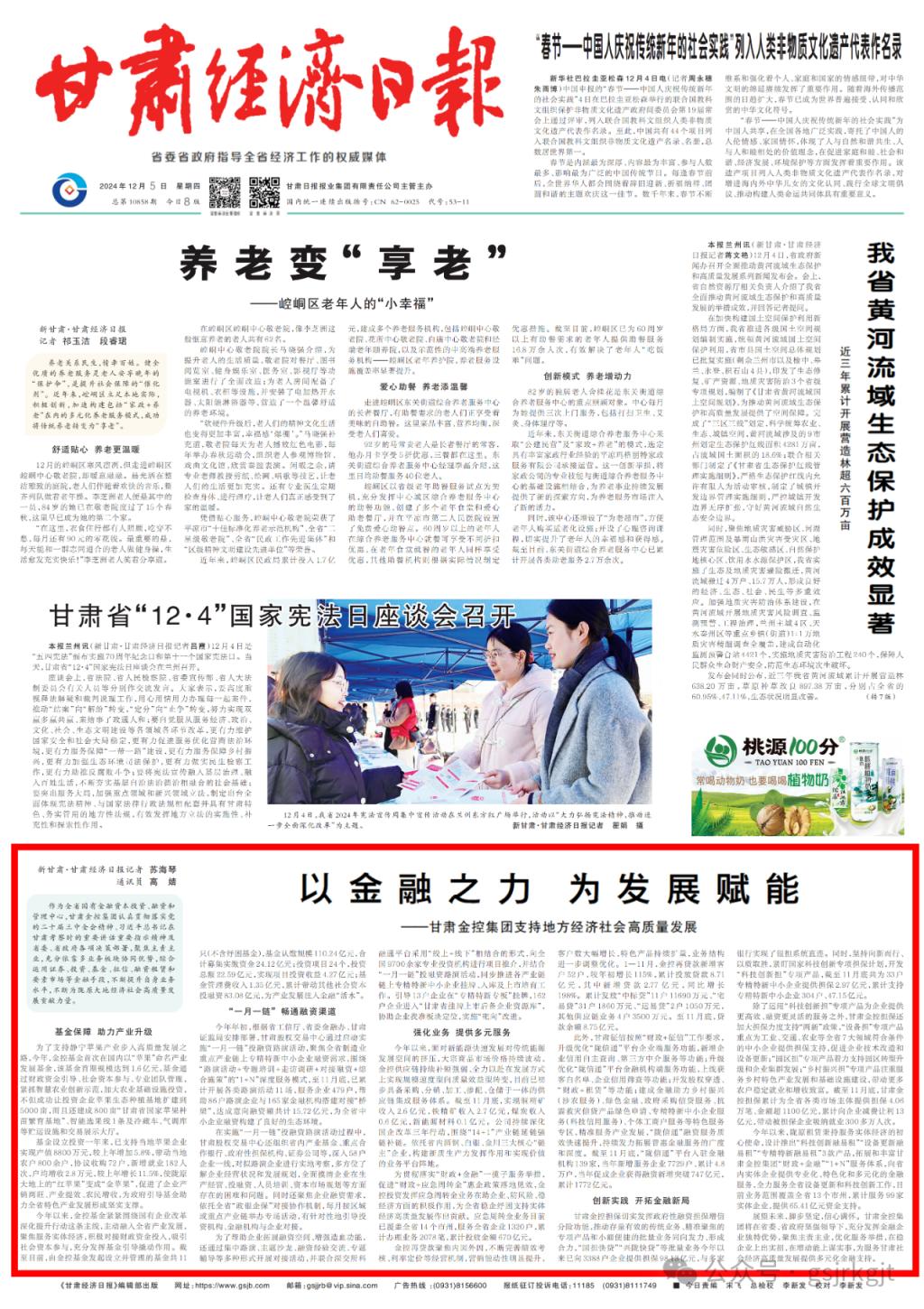 作为全省国有金融资本投资、融资和管理中心,星空(中国)认真贯彻落实党的二十届三中全会精神、习近平总书记在甘肃考察时的重要讲话重要指示精神及省委、省政府各项决策部署,聚焦主责主业,充分依靠多业务板块协同优势,综合运用证券、投资、基金、征信、融资租赁和要素市场等金融手段,不断提升自身业务水平,不断为陇原大地经济社会高质量发展贡献力量。