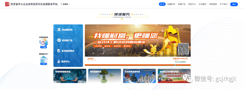 新平台页面采用分屏展示的模式,设置了五大特殊服务专区:绿色金融服务专区、抗击疫情金融专区、金融助力乡村振兴专区、专精特新服务专区、企业服务专区,增加金融产品、金融机构搜索框,添加业务功能快捷入口,优化企业客户、金融机构客户、政府客户、其他用户的登录窗口,完善首页业务统计功能。